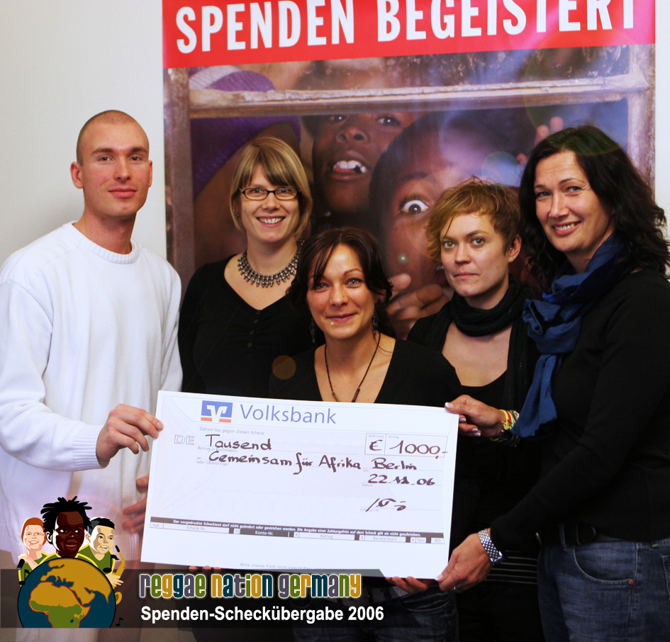 Am 9. September 2006 fand der erste ganztägige REGGAE NATION GERMANY - Projekttag zugunsten der Kampagne GEMEINSAM FÜR AFRIKA statt. Über 700 Besucher fanden den Weg ins Kennel Bad in Braunschweig, um sich die Konzerte von Uwe Banton, Martin Jondo, Mellow Mark, Nattyflo, Marlene Johnson, Jah Meek, House Of Riddim, Ganjaman und vielen anderen Reggae Stars anzuschauen. Und dabei wurde auch etwas Gutes getan: Immerhin gingen an dem Tag 1 Euro pro Eintrittskarte, sowie weitere Teilerlöse des Projekttages an die Kampagne GEMEINSAM FÜR AFRIKA. Insgesamt konnten somit 1000 Euro erzielt werden, die den Hilfsorganisationen und ihren mehr als 5000 Projekten in Afrika zugute kamen. Am 22. Dezember 2006 überreichte Projektleiter Steven Tümler den Spendenscheck offiziell an die Kampagne GEMEINSAM FÜR AFRIKA.