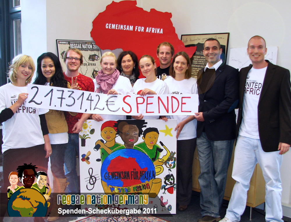 Beflügelt von einer mittlerweile sechsjährigen Partnerschaft, sowie von einem leidenschaftlichen und gemeinsamen Engagement für den afrikanischen Kontinent, haben das Jugendprojekt REGGAE NATION GERMANY und die Kampagne GEMEINSM FÜR AFRIKA am 3. September 2011 im Berliner Tempodrom den großen Projekttag UNITED FOR AFRICA realisiert. Unzählige Künstler, unter ihnen Gentleman, Nosliw, Wolfgang Niedecken, Ganjaman, und viele weitere Wegbegleiter der vergangenen Jahre folgten dem Ruf nach mehr Gerechtigkeit für notleidende Menschen am Horn von Afrika. Mit einem riesigen Konzertprogramm am Abend, sowie einem Workshop-Angebot für Kinder und Jugendliche zum Thema Afrika, wurde nach sechsjäriger Projektzeit ein wunderbares Abschlussevent organsiert. 21.731,42 Euro kamen zusammen und kommen nun den Hilfsorganisationen in Ostafrika zugute. "Hinter solch einem Projekt steckt ungeheuer viel Arbeit. Am Ende ist es dann schön zusehen, dass so viele Menschen bereit sind, notleidenden Menschen eine helfenden Hand auszustrecken, ohne selbst dafür etwas zu verlangen", so die Organisatoren von REGGAE NATION GERMANY und dem Projekttag UNITED FOR AFRICA.